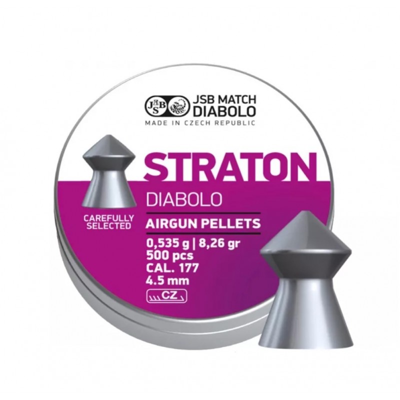 Diabolky JSB Straton 4,5mm sú vhodné na lov aj rekreačnú streľbu. Vďaka svojej špicatej hlavičke ponúkajú zlepšenú schopnosť prieniku a sú ideálne na využitie vo vzduchových puškách aj pištoliach.