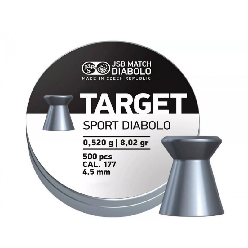Diabolky JSB Match Diabolo Target Sport kalibru 4,5 mm sú ideálne pre tréning a rekreačnú streľbu. Tento typ streliva je vyrábaný rovnakým procesom ako všetky produkty z radu MATCH, ale neprechádza ručnou výstupnou kontrolou, čo umožňuje nižšiu cenu.