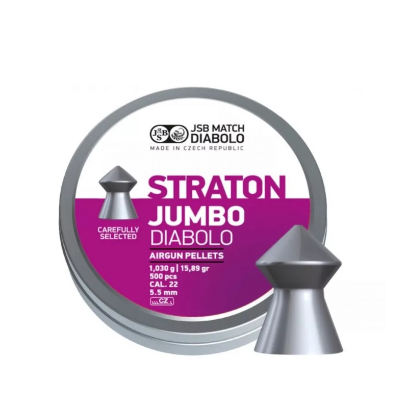 Diabolky JSB Straton Jumbo 5,5 mm sú určené na lov a rekreačnú streľbu, ich špicatá hlavička zaisťuje väčší prienik. Sú ideálne na použitie v rámci vzduchových pušiek aj pištolí.
