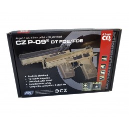 Vzduchová pištoľ CZ P-09 Bicolor kalibru 4,5 mm od dánskej spoločnosti ASG. Zbraň je vyrobená z kovu a kvalitného polyméru. Pištoľ má obojstranný zásobník s venčekmi, každý na 8 rán. Celkom je teda možné vložiť 16 ks olovených diaboliek. Pokiaľ radšej strieľate oceľovými brokmi, tak aj to je vďaka integrovaným magnetom u tejto pištole možné.