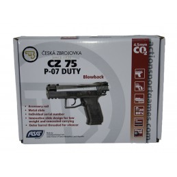 ASG CZ 75 P-07 Duty Bicolor je vzduchová CO2 pištoľ na oceľové broky kalibru 4,5 mm. Záver pištole je vyrobený z kovu, rám je polymérový. Pištoľ je vybavená Blowback systémom, ktorý imituje pohyb záveru. Táto replika je inšpirovaná populárnou českou pištoľou CZ-75 P-07.