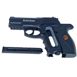 Bruni C11 je malá a ľahká vzduchová CO2 pištoľ, ktorá je vyrobená z polymérového materiálu s kovovými vnútornými časťami.