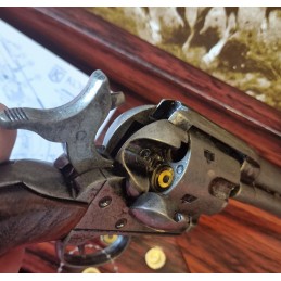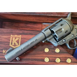 Dekoračné replika, colt Peacemaker kaliber .45 s drevenou rukoväťou, povrchová úprava hlavne je v striebornom, starobylom prevedení. Mechanizmus naťahovanie a otáčanie bubienka je funkčný. Skrátená verzia hlavne.