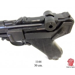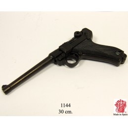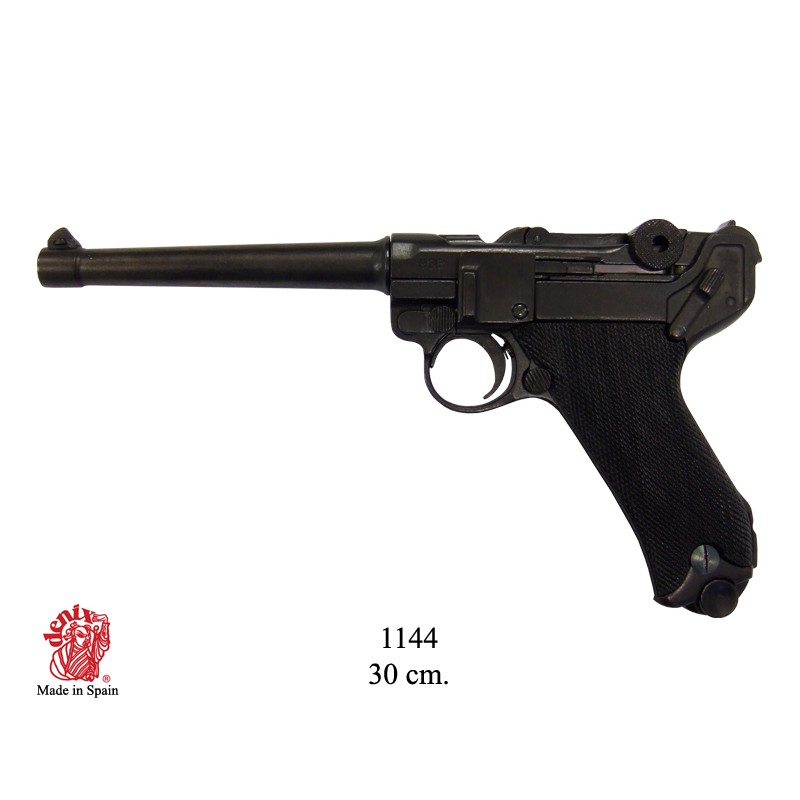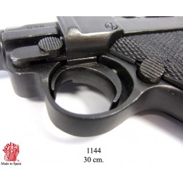 Dekoračná replika, nemecká pištole Parabellum Luger 1898 používaná za 1. a 2. svetovej vojny. Mechanizmus zbrane je pohyblivý, zásobník možno vybrať. Pištoľ je vyrobená z kovu, črienky sú plastové.