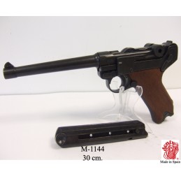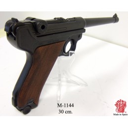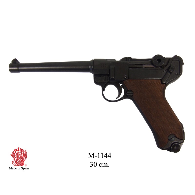 Dekoračná replika nemeckej pištole Parabellum Luger 1898 používané za 1. a 2. svetovej vojny. Mechanizmus zbrane je pohyblivý, zásobník možno vybrať. Pištoľ je vyrobená z kovu a dreva.