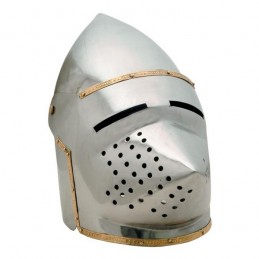 Tento štýl prilby sa stal populárny na konci 13. storočia, kedy nahradil veľkú helmu, pretože lepšie pasoval na hlavu. Ku koncu 14. storočia bola pre svoju zašpicatenou predná časť prezývaná anglicky hounskull a nemecky hundsgugel čiže "basinet s hľadím v tvare psieho ňufáku". Táto výnimočná helma v plnej veľkosti je starostlivo ručne vyrobená z ocele hrúbky 1 mm a ozdobená mosadznými reliéfy. Každá prilba sa dá nosiť a stane sa pôsobivým prírastkom do vašej zbierky. Prilba Bascinet sa vyvinula z železnej lebky (cervelliere).