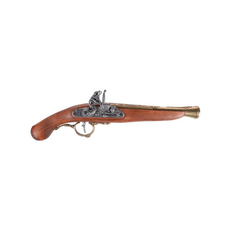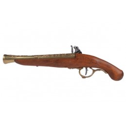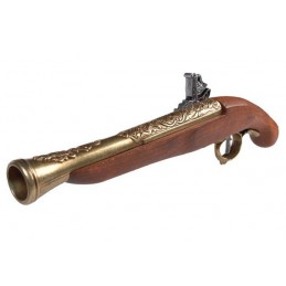 Dekoračná replika, Anglická pištole, 18. stor., mosadzná povrchová úprava.
