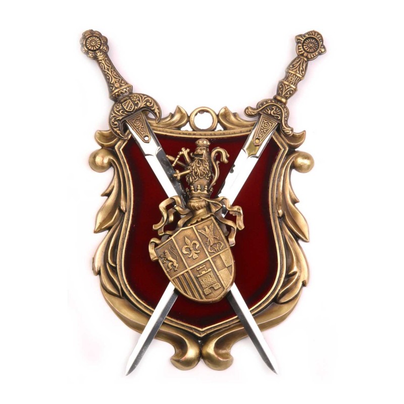 Erb zdobený meči Richarda Levie Srdce a El CIDA.