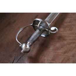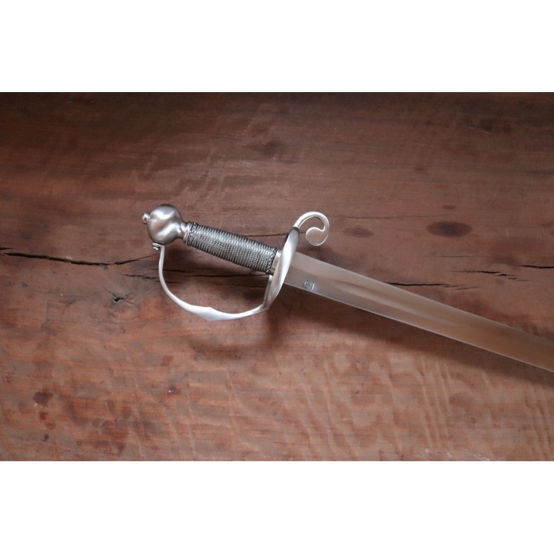 Čepeľ je kovaná a kolená na tvrdosť 50-52HRc. Možno použiť na šerm. Ručná výroba.