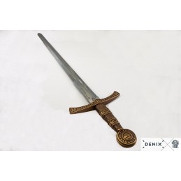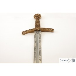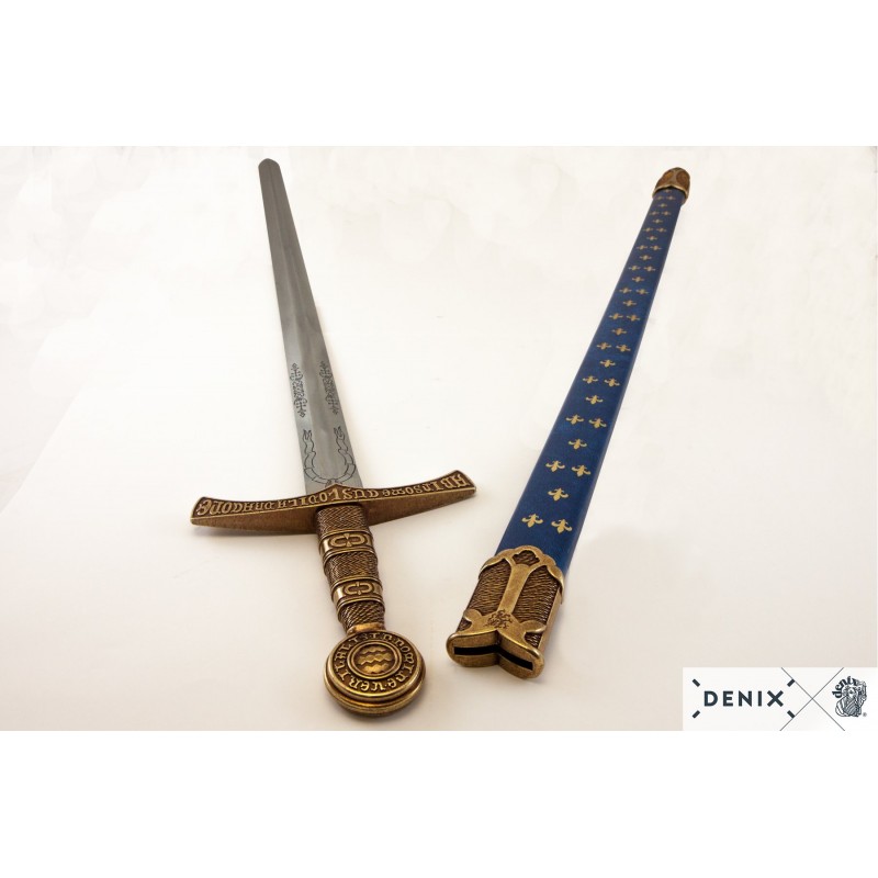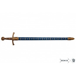 Replika francúzskeho, stredovekého meča zo 14.storočia vrátane odnímateľné, zdobené pošvy. Meč je vyrobený z kovu a je zdobený gravírovaním, pošva je vyrobená z tvrdeného plastu s kovovými doplnkami. Kríž a hlavica meče majú nápis vo vulgárne latinčine, ktorý v preklade znamená: "držané drakom, ktorý v mene pravdy nespí,".