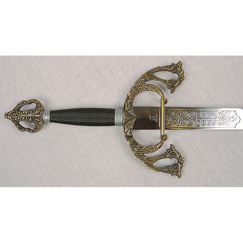 Dekoračná replika meča TIZONA španielskeho rytiera EL CIDA z leštenej nerezovej ocele v kombinácii s kovom vo farbe bronzu.