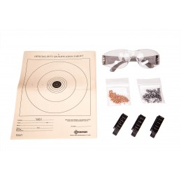 Vzduchová puška Crosman M4-177 je dodávaná v sete, ktorý obsahuje vzduchovku, okuliare, 3 zásobníky na diabolky, 50 brokov, 50 diaboliek a 5ks terčov.