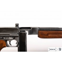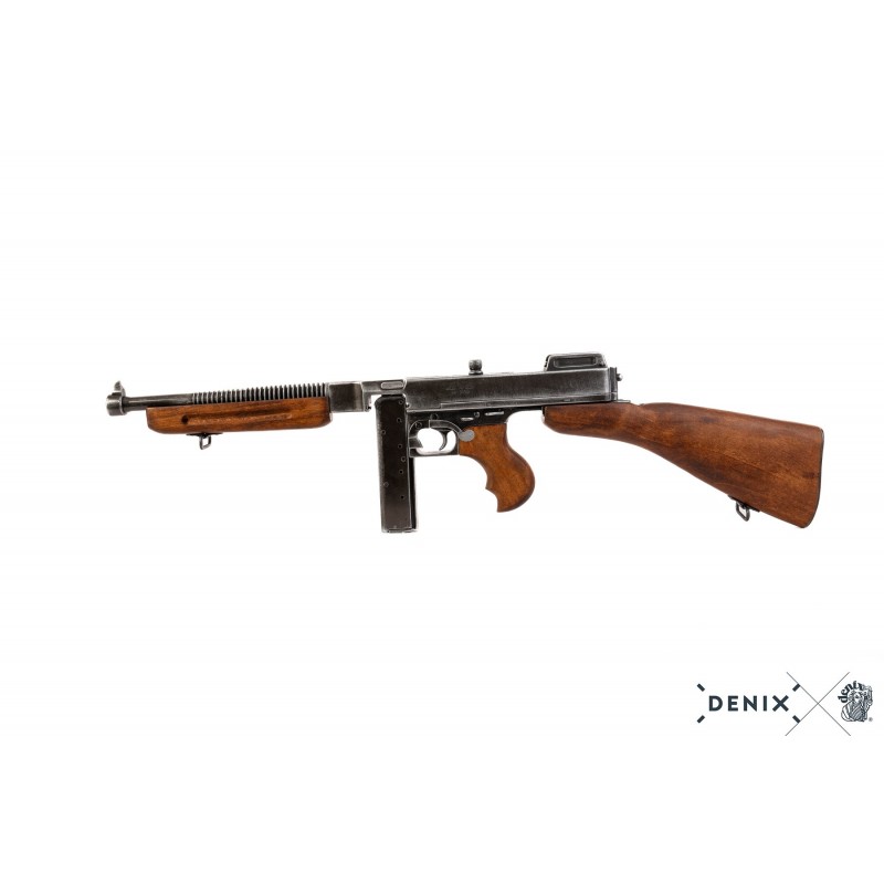 Detailne spracovaná dekoračná replika legendárneho samopalu, ktorý sa preslávil predovšetkým počas prohibičnej éry av druhej svetovej vojne. Pevná konštrukcia je vyrobená z kovu s patinovanou úpravou v kombinácii s kvalitným drevom, ktoré zdôrazňuje historickú atmosféru tohto modelu.