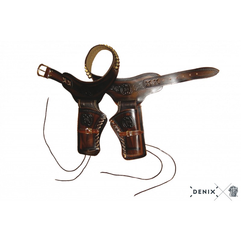 Westernový holster 115 cm pre dva revolvery + 14 nábojov od spoločnosti KOLSER.