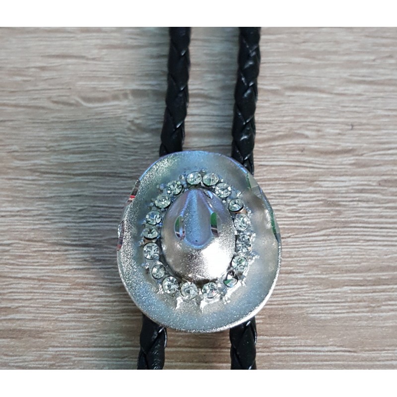 Westernové bolo - kovbojská kravata. Strieborny klobúk s rakúskymi kryštáliky.