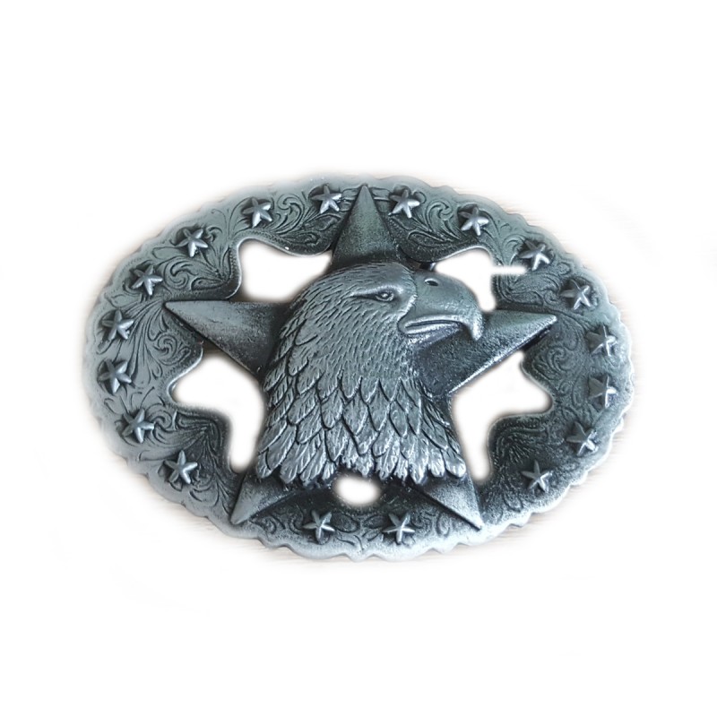 Westernová opasková pracka s vyobrazením orla na päťcípej hviezde. V povrchovej úprave starostříbro.
